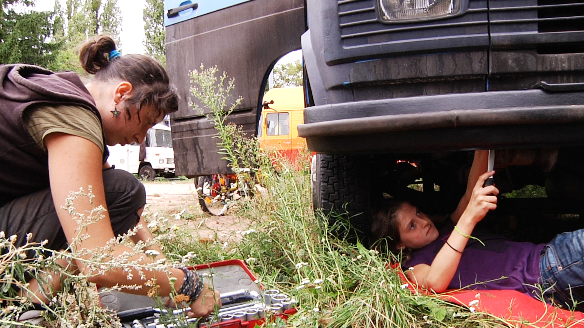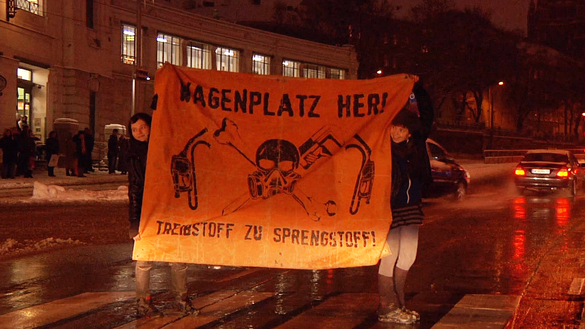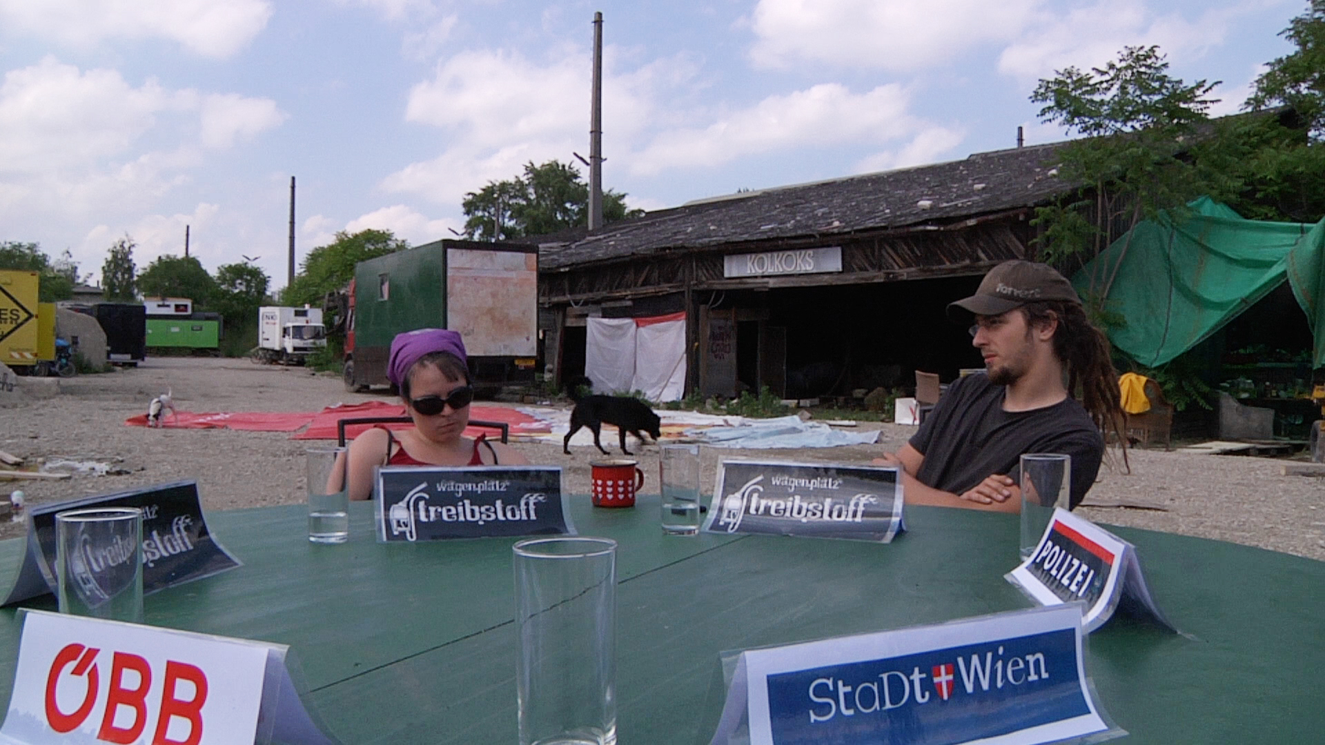 We experience the great endeavours of the inhabitants of the car to initiate a political solution for their experimental way of life, let them speak about their hopes, wishes, motivations, fears and anger and move with them like an odyssey from wasteland to wasteland.